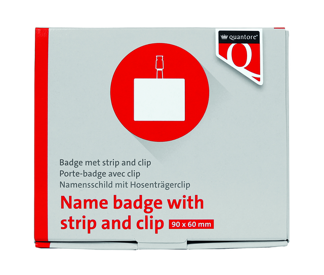 • De Quantore badge met clip is een praktische en professionele oplossing voor het eenvoudig tonen van naamkaartjes tijdens vergaderingen, conferenties, seminars en recepties. De badge is transparant uitgevoerd en wordt geleverd met een verwisselbaar blanco insteekkaartje. Dankzij de duimuitsparing aan de achterzijde kunnen kaartjes snel en gemakkelijk worden vervangen. De badge is voorzien van een strip met stevige bretelclip, die eenvoudig bevestigd kan worden via de voor geponste sleuf.Kenmerken: