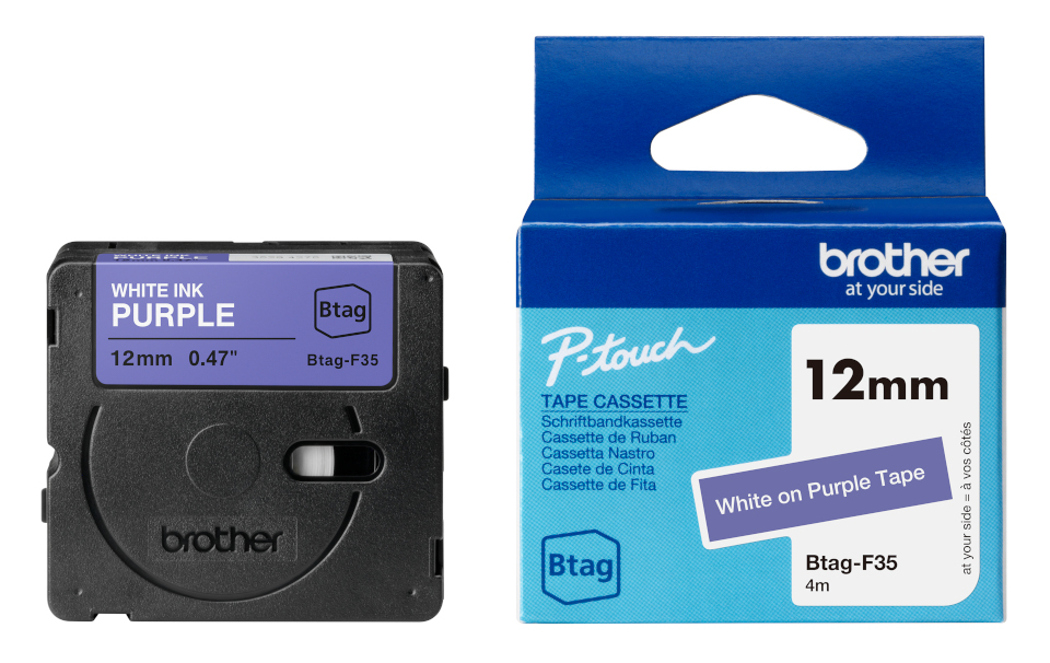 Productinformatie "Brother Btag-F35 wit op paars"