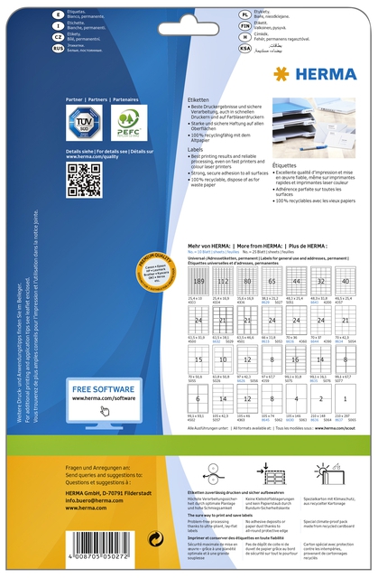 Etiket HERMA 5027 A4 38.1x21.2mm premium wit