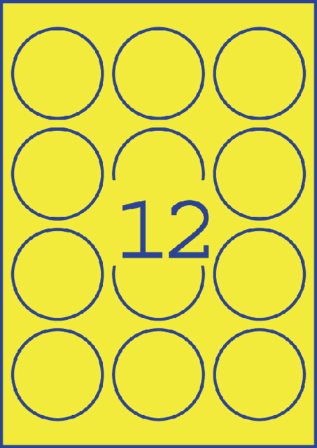 Etiket Avery L7670-25 63.5mm rond neon geel 300 etiketten