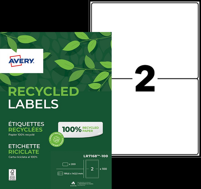Etiket Avery LR7168-100 199.6x143.5mm recycled wit 200 etiketten