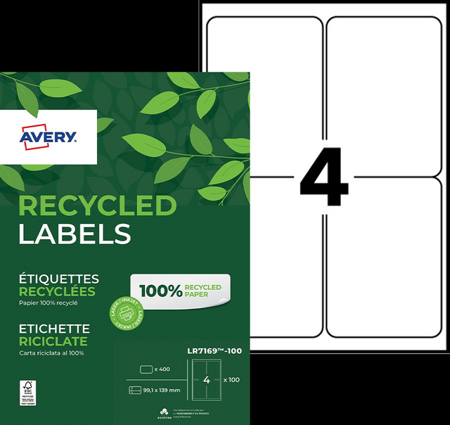 Etiket Avery LR7169-100 99.1x139 mm recycled wit 400 etiketten