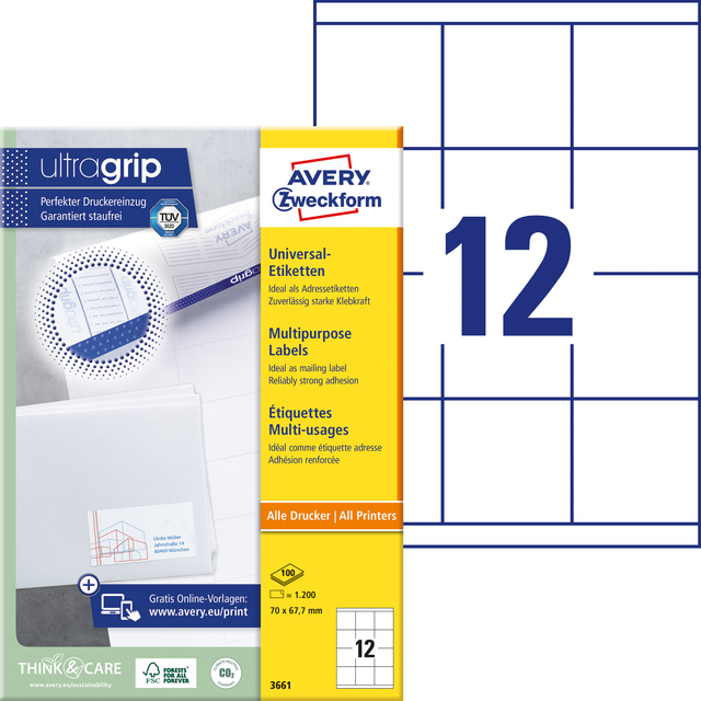 Etiket Avery Zweckform 3661 70x67.7mm wit 1200stuks