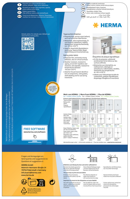 Eigenschappen "Etiket HERMA 4224 210x297mm weerbestendig zilver 25stuks"