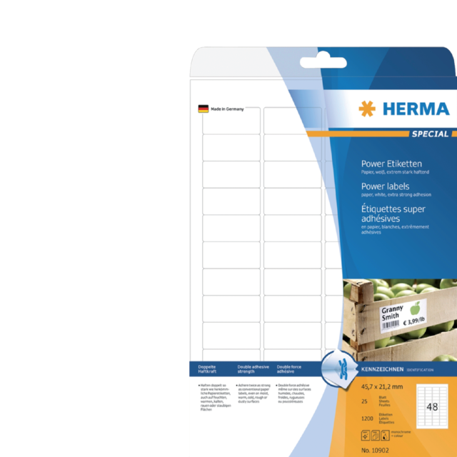 Eigenschappen "Etiket HERMA Power 10902 45.7x21.2mm wit 1200stuks"