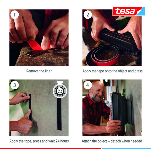 - Unieke paddenstoelvergrendeling: Dit is de sterkste klittenbandtape in het tesa® assortiment