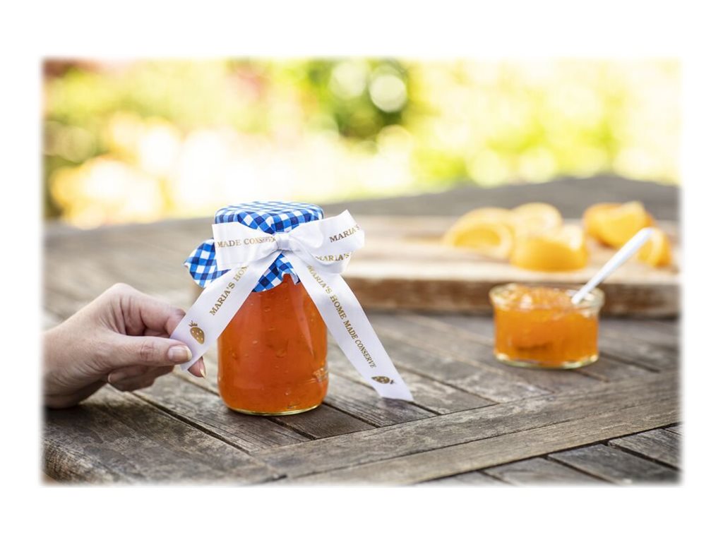 Met de TZe-R254 maakt u snel stijlvolle linten met scherpe, professionele opdruk. Dit prachtige goud op wit premium lint heeft dankzij de glanzende afwerking een mooie, luxe uitstraling en is perfect geschikt voor het inpakken van belangrijke cadeautjes en bijzondere hobbyprojecten.