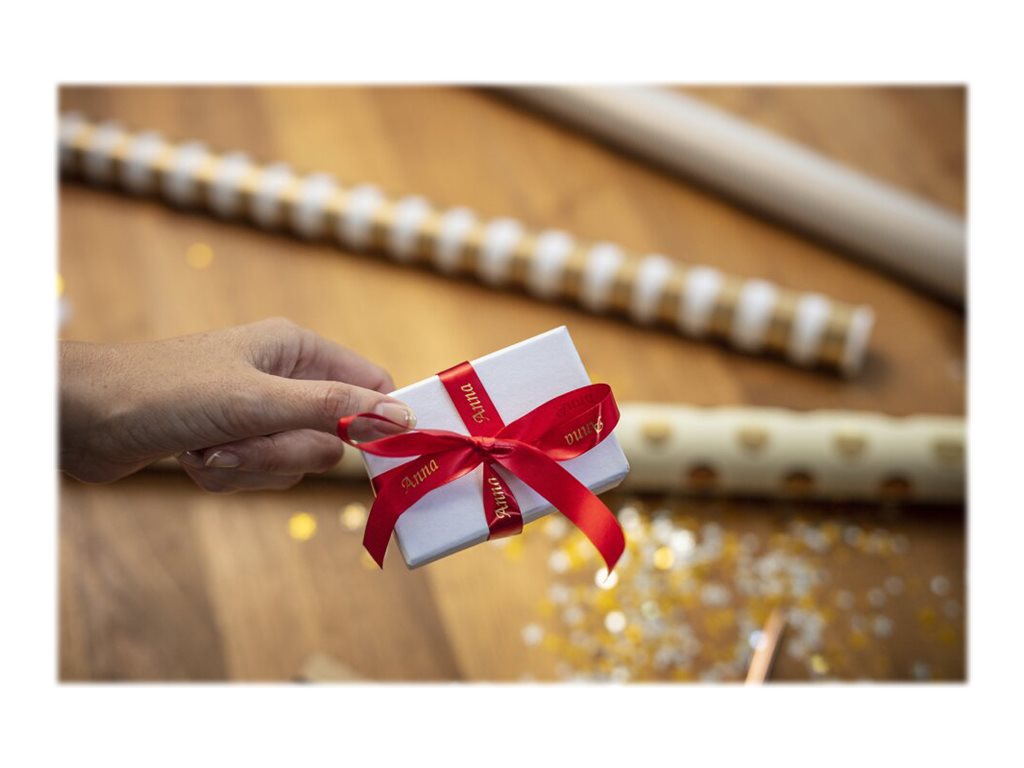 Met de TZe-RW34 maakt u snel stijlvolle linten met scherpe, professionele opdruk. Dit prachtige goud op wijnrood premium lint heeft dankzij de glanzende afwerking een mooie, luxe uitstraling en is perfect geschikt voor het inpakken van belangrijke cadeautjes en bijzondere hobbyprojecten.