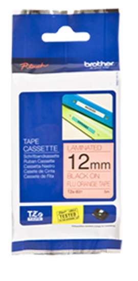 TZe-B31 12mm Zwart op Oranje Fluorescerend