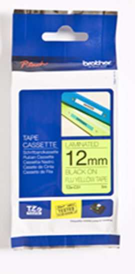 TZe-C31 12mm Zwart op Geel Fluorescerend