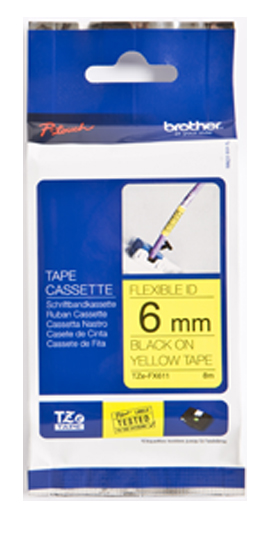 TZe-FX611 6mm Flexibele tape Zwart op geel
