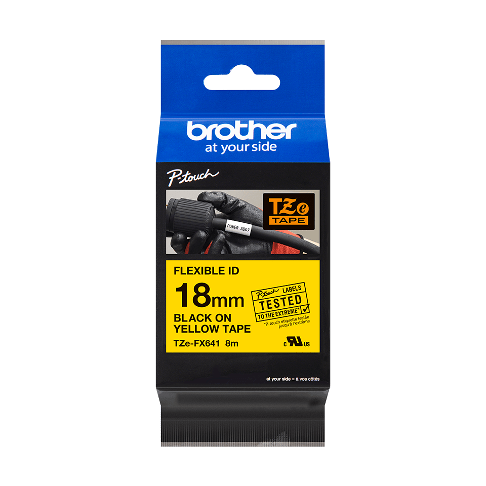 Eigenschappen "TZe-FX641 18mm Zwart op Geel - flexibel"