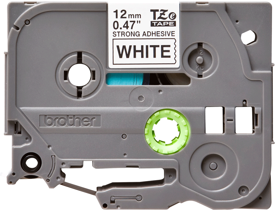 TZe-S231 12mm Zwart op Wit Sterk klevend De sterk klevende TZe tape is bedoeld voor ruwe, moeilijke ondergronden en zorgt door de extra sterke lijmlaag voor een goede kleefkracht.