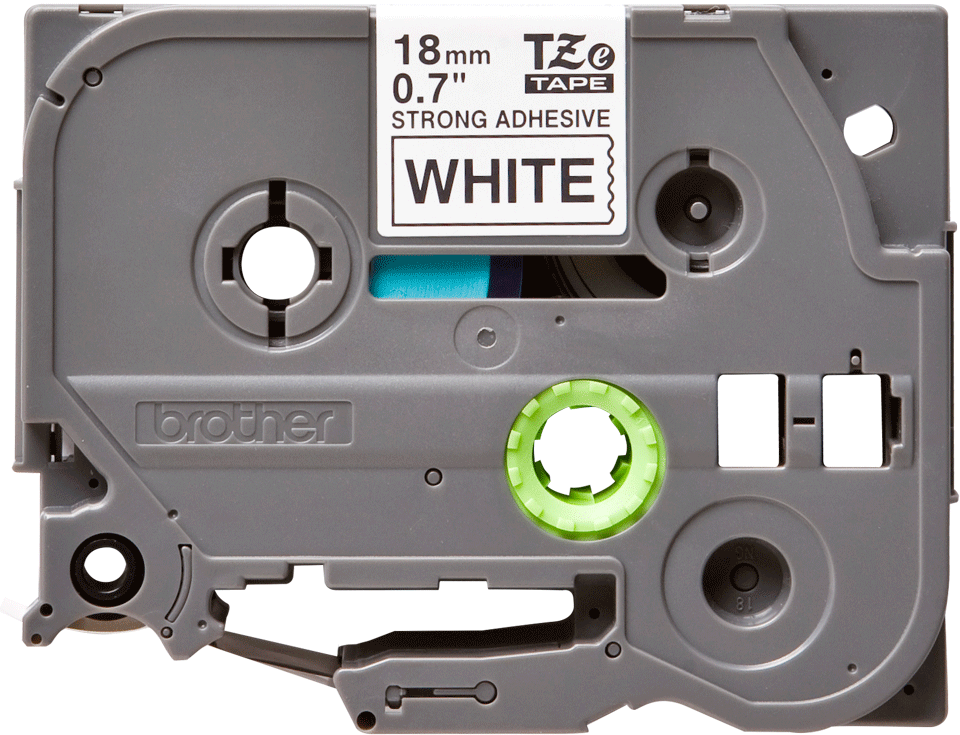 TZe-S241 18mm Zwart op Wit Sterk klevend De sterk klevende TZe tape is bedoeld voor ruwe, moeilijke ondergronden en zorgt door de extra sterke lijmlaag voor een goede kleefkracht.