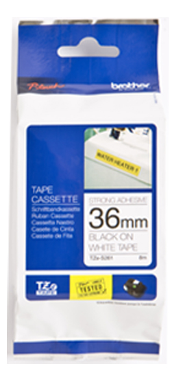 TZe-S261 / TZ-S261 36mm, zwart op wit De sterk klevende TZe tape is bedoeld voor ruwe, moeilijke ondergronden en zorgt door de extra sterke lijmlaag voor een goede kleefkracht.