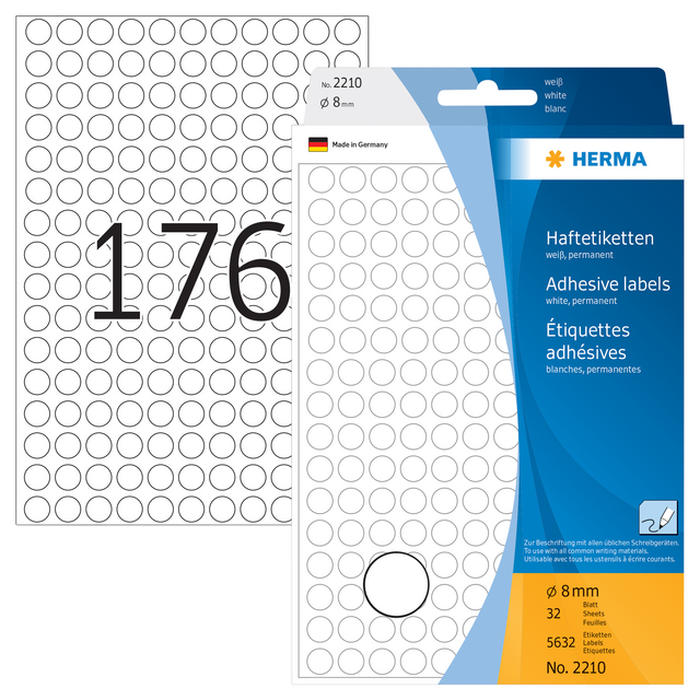Eigenschappen "Etiket HERMA 2210 rond 8mm wit 5632stuks"