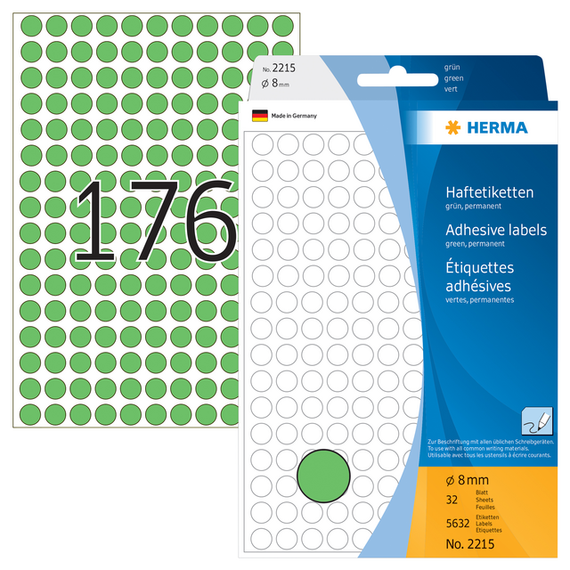 Eigenschappen "Etiket HERMA 2215 rond 8mm groen 5632stuks"