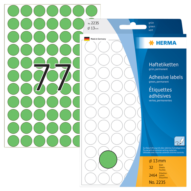 Eigenschappen "Etiket HERMA 2235 rond 13mm groen 2464stuks"