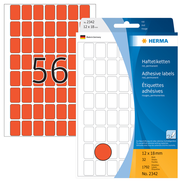 Eigenschappen "Etiket HERMA 2342 12x18mm rood 1792stuks"
