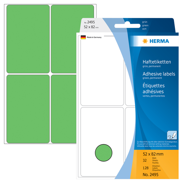 Eigenschappen "Etiket HERMA 2495 52x82mm groen 128stuks"