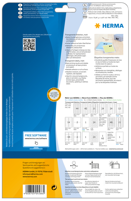 - Transparante matte folie-etiketten op A4-vellen, zelfklevend.