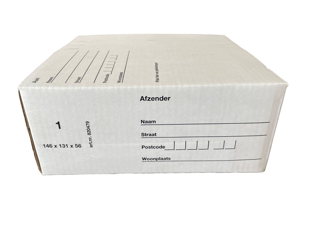 - De postpakketbox heeft twee adresblokken. Eén voor de adresgegevens van de ontvanger en één voor uw afzendergegevens. Aparte adresstickers zijn dus overbodig.